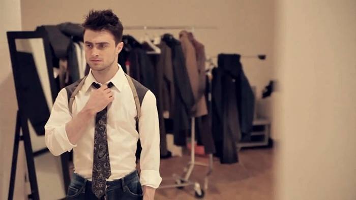 Daniel wygląda tutaj całkiem w porządku, podoba mi się jego ubiór. Ciekawi mnie czy to coś co ma na ramionach to część koszuli czy oddzielna kamizelka. Wzór na krawacie przypomina mi trochę węże...