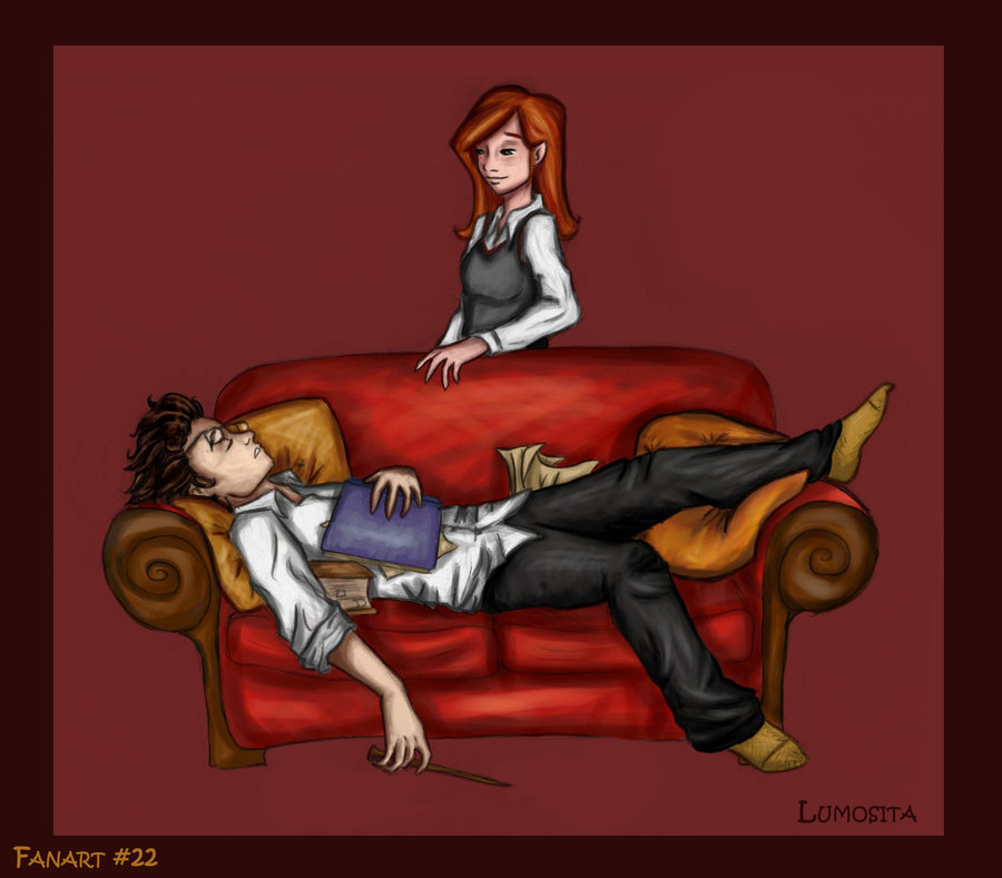No i nic nowego... Zakochana para może razem w pokoju wspólnym Gryffindoru. No i brak jakiegoś tła na tym obrazku. Zgaduję też, że to czas ich "sesji" albo egzaminów ^^