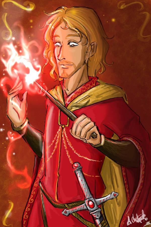 Tutaj Godryk przynajmniej ma różdżkę, bo znowu by wyglądał tylko i wyłącznie jak typowy rycerz ^^ Coś jak sir Cadogan