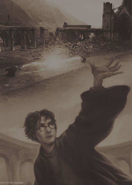 To zdjecie z okladki chyba Insygniow Smierci, a powyzejk wlasnie bitwa z Voldemortem, czyli czarna rozdzka przeciwko rozdzce Harry'ego, w sumie to ciekawe dlaczego Harry nie zostawil sobie tej czarnej rozdzki tylko ja schowal z powrotem w grobie Dumbledore'a chyba tak?;p