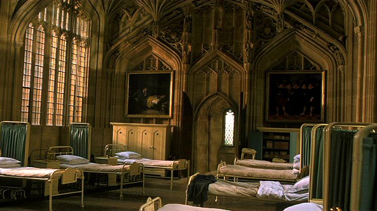 Skrzydło szpitalne to jedno z nielicznych miejsc, które w filmach wyglądało tak jak sobie wyobrażałem je czytając powieść. Łóżka, spokój, przestrzeń i kochana i opiekuńcza pani Pomfrey ;p No i życzliwi odwiedzający ;p Dlatego bardzo fajnie to zaprezentowano ;p