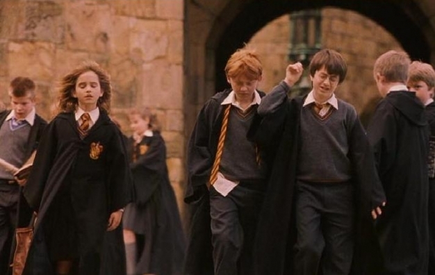 hahaha ale mają miny, lubie takie fotki z zaskoczenia. chyba, że są to moje zdjęcia to już nie bardzo. tutaj każde z nich wygląda śmiesznie. Ron patrzy pod nogi by się nie wywrócić, Harry jakby coś im tłumaczył z wielką ekscytacją, a Harmionka nie wie o co chodzi.