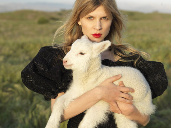 Co ona robi z tą biedną owieczką?! Przytula, to jakoś nie pasuje do królowej "Nie chcę mi się tu być". Sukienka brzydka, Clemecy ma brzydki makijaż, w skrócie - brzydkie zdjęcie.