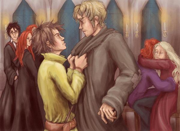w tle Harry, Ginny, ale Luna kogo przytula? A może to Fleur i pani Weasley ; ) Podoba mi się.