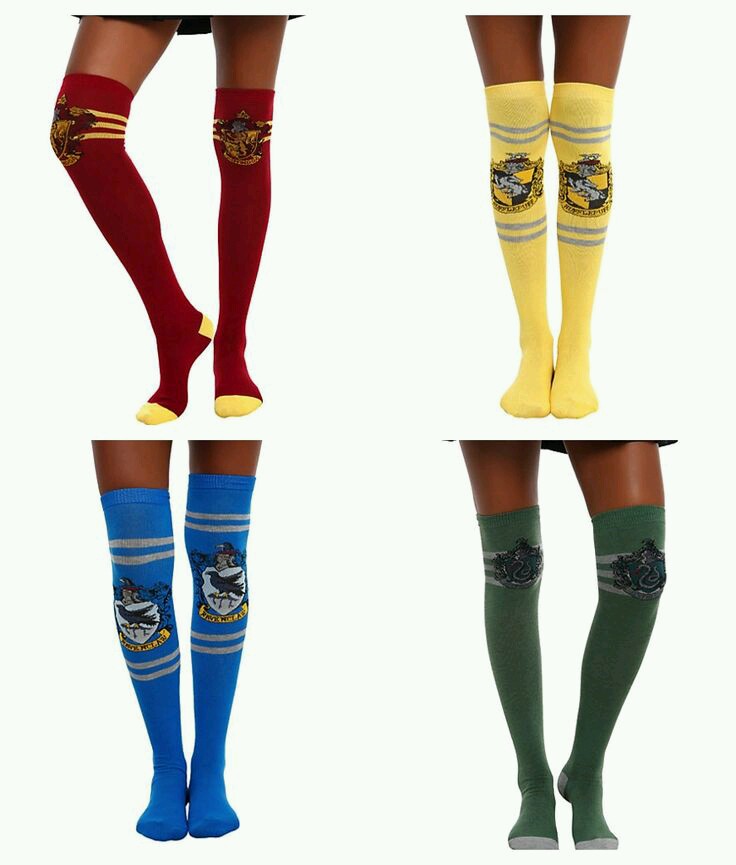 Od niedawna mam fazę na podkolanówki. A te o tematyce potterowskiej są obłędne! Najbardziej oczarowały mnie Puchońskie oraz te dla Gryfonów. Są jasne i dobrze widoczne, do tego herby także wyglądają świetnie. W podkolanówkach z Ravu w herbie (z tej odległości) widzę kruka. Moim zdaniem wygląda to trochę dziecinnie.