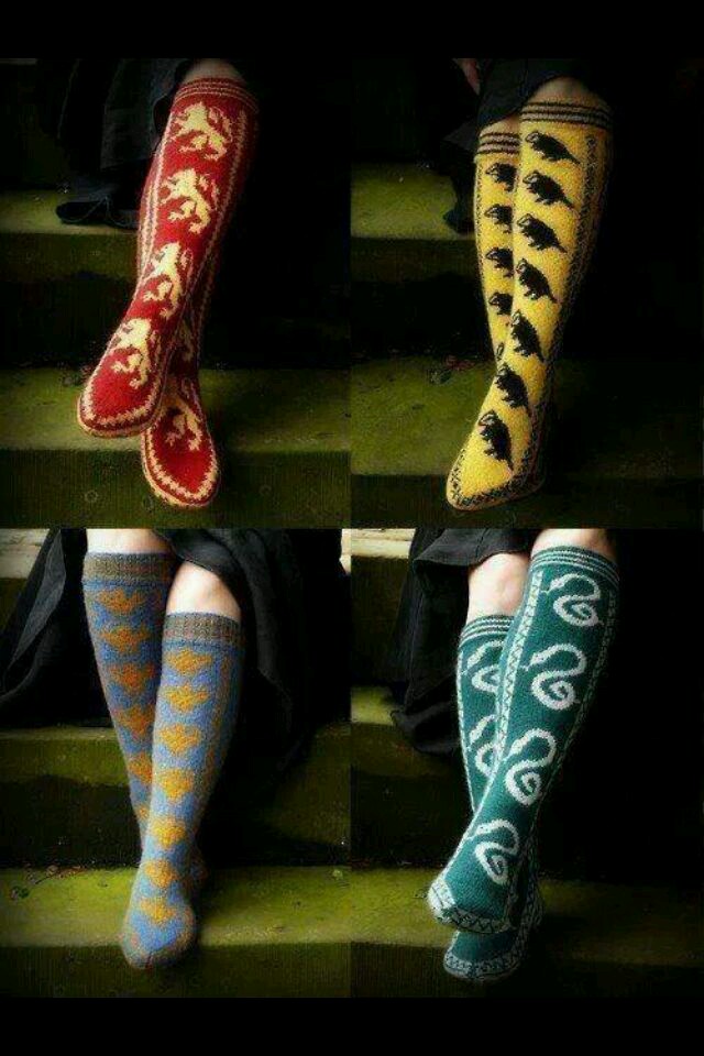 Ech, znowu podkolanówki. Tym razem chyba podobają mi się najbardziej te ze Slytherinu, ale też bez szału. Przynajmniej nie są takie blade, nudne i pospolite jak poprzednie
