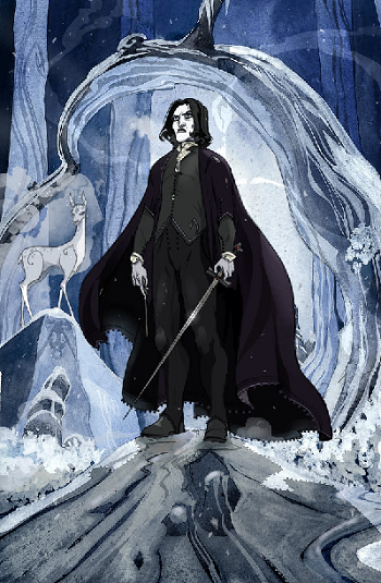 Niezły pomysł na fanart, gorzej z wykonaniem. Nienaturalnie "podcięty" śnieg i widok tych (pikseli? kropek?) nie jest czymś pożądanym. Z mojej strony dodam, że jego twarz też mi nie spasowała. Plusem jednak z pewnością jest nietuzinkowy pomysł przedstawienia Severusa w scenie chowania miecza pod powierzchnią lodu