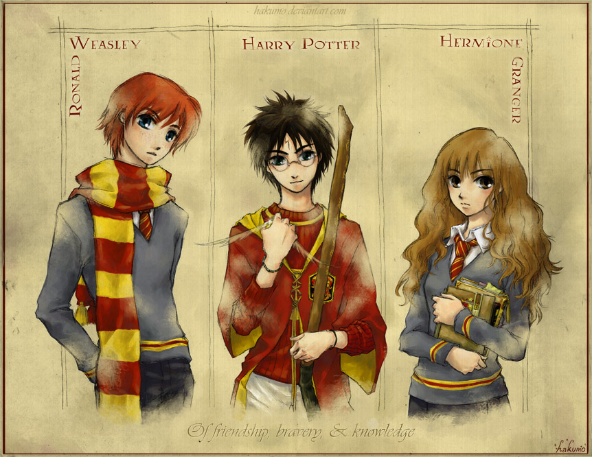 Jak z jakiegos anime troche, Ron tak kiepskawo wyglada, troche jak dziewczyna , Hermiona troche jak Ron, czyli jak facet, chyba Harry tutaj najlepiej wyszedl na tych zdjeciach, znaczy na tym obrazku