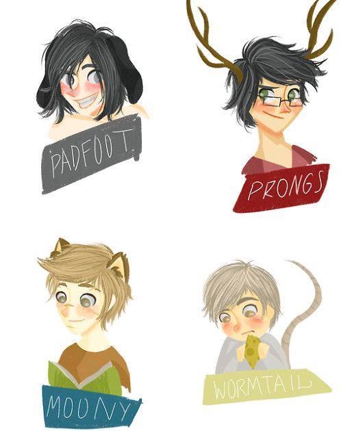 Przekombinowane. Te postacie są zbyt urocze, żeby je nazwać Huncwotami, a już w ogóle animagami, czy czymś. Nie, nie popieram takich obrazków. Są zbyt przesłodzone. W ogóle takie postacie są zbyt cute