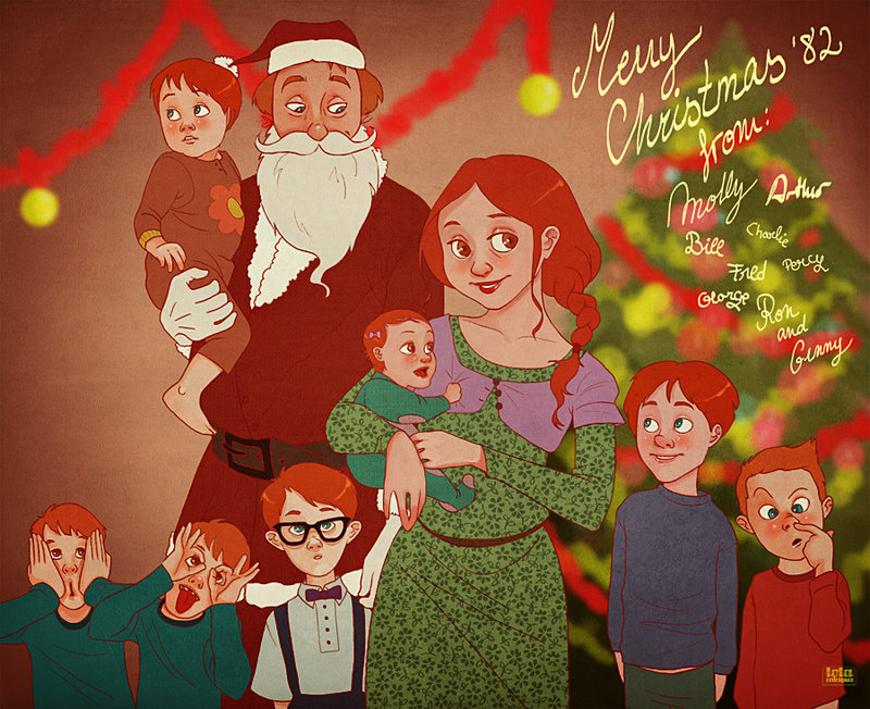 O kurczę, to urocze. Naprawdę bardzo mi się podoba ujęcie Bożego Narodzenia u Weasleyów. Molly wyszła bardzo ładnie. Fred i George jak takie zgrywuski, chyba już od najmłodszych lat tacy byli. Percy prymus. I malutka Ginny *0* chyba mi się instynkt macierzyński odezwał