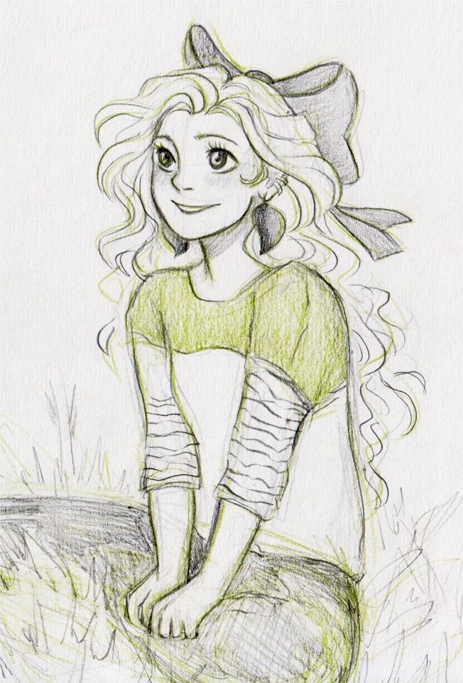 Pomysł na obrazek Luny całkiem udany, gdyby nie to nawiązanie, do japońskich kreskówek. To raczej jedna z tych nielicznych sytuacji, kiedy zadbała o swoją fryzurę. Chyba jakaś impreza się szykuje.