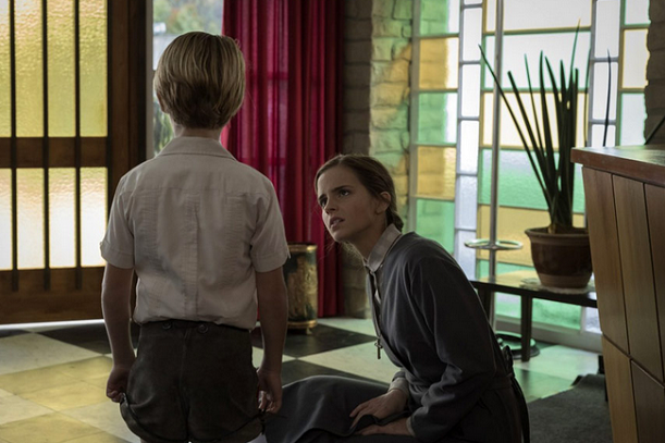 Emma jako starsza siostra, czy też matka chlopaka na zdjęciu? Wydaje się tutaj być lekko podenerwowana. Chłopak chyba zrobił coś niedobrego i teraz będzie trzeba to naprawić. A może ona tutaj gra jakąś osobę religijną, bo zwisa jej krzyż z szyi.