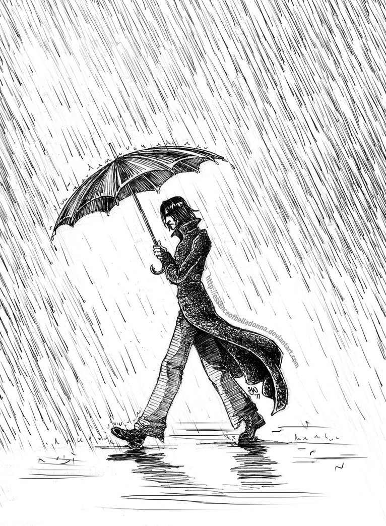 Deszcz, chmura (w domyśle), Severus z parasolką. Jakoś to wygląda jak ilustracja w dobrej książce kryminalnej.
