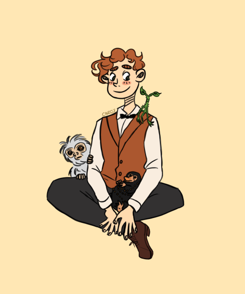 Jakie te zwierzaki Newta są przeurocze i przesłodkie. Choć sam Scamander wyszedł tutaj troszkę jak młodsza wersja Rona, to jednak fajnie jest w końcu zobaczyć w naszej galerii fanarty z FZ