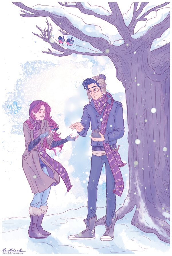 Już chyba widziałem te ich romantyczne spotkania w zimowej aurze. Bardzo mi się podoba ten obrazek, choć osobiście uważam, że temat jest już aż nadto wyczerpany ;d Dlatego wolałbym jakieś inne fanarty z tą dwójką.