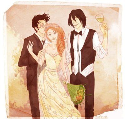 Na ślubnym kobiercu brakuje mi przede wszystkim kogoś czwartego - a gdzie jakaś druhna? Ciekawe, czy Petunia mogła być zaproszona na taki czarodziejski ślub? W ogóle to ciekawi mnie to, że jak jakiś czarodziej urodził się w magicznej rodzinie, to czy rodzina mówiła o tym komuś (sąsiadce)? Pewnie nie...