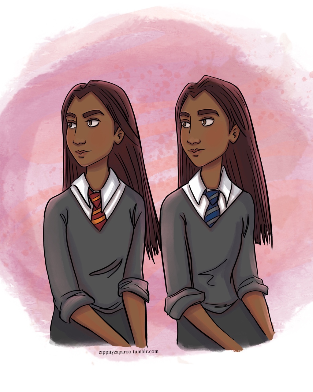 Szkoda, że w filmie to skopali i bliźniaczki były w Gryffindorze, choć w książce trafiły do innych domów.