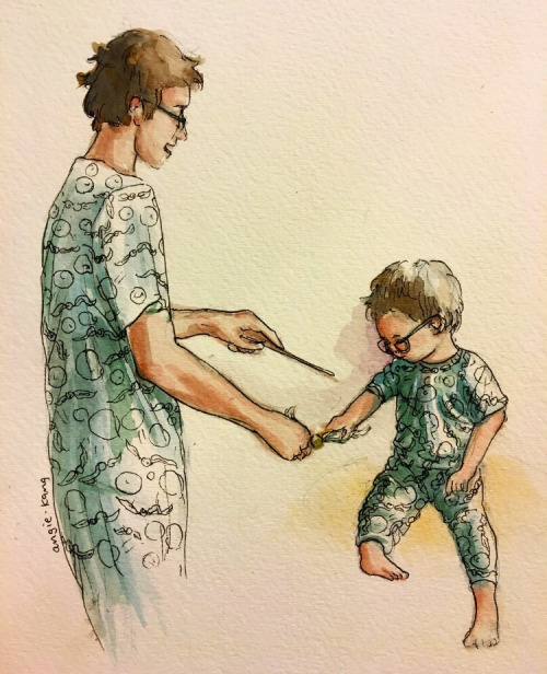 Takie urocze zdjątko. Tata James bawi synka. Ogólnie bardzo lubię czytać ficki z czasów, gdy Harry już był na świecie, ale Potterowie jeszcze żyli. Nie wiem, dlaczego, lubię takie sielanki, że było spokojnie i normalnie.