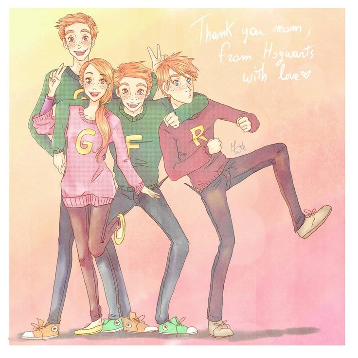 Chyba tylko i wyłącznie po tych literkach na sweterkach od pani Weasley <; Choć Ginny to jakaś inna dla mnie dziewczyna. Zupełnie inaczej przedstawiona. Bardzo mi się to podoba, choć jakoś specjalnie za tą rodziną nie przepadałem <;
