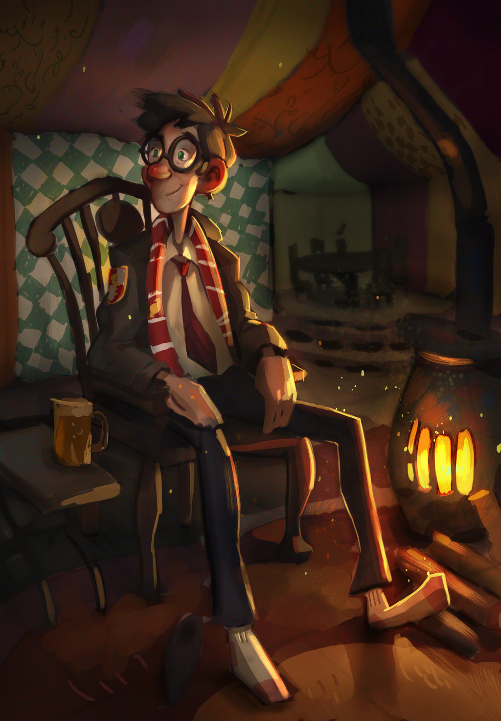 Piwko przy jakimś kominku. Trochę mi przypomina takiego sympatycznego pijaczka, który wpadł sobie do baru czy pubu na kilka kolejek - albo w sam sobie popija jak zimno na dworze <;