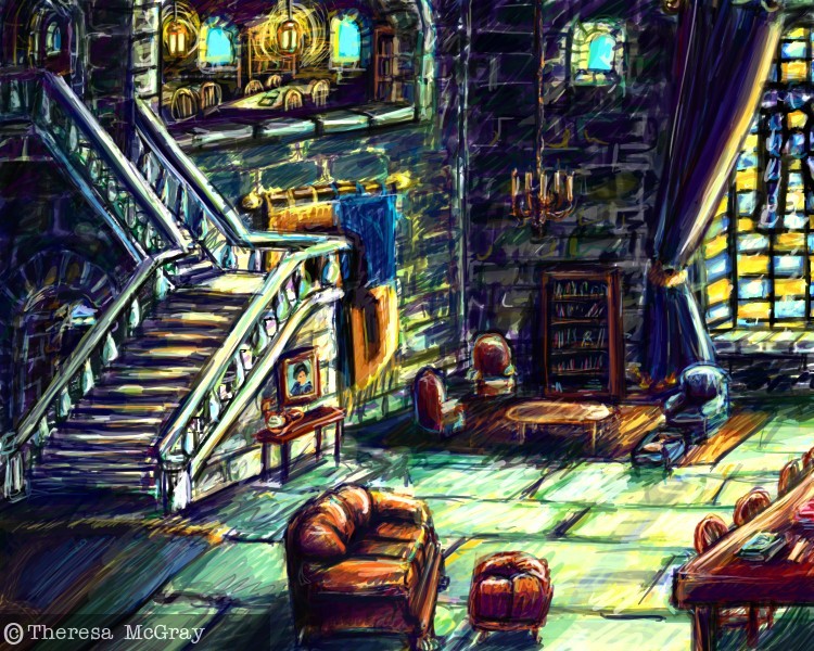 Bardzo żałuję tego, że w ekranizacjach cudownych filmów powieści Rowling zabrakło wielu miejsc w zamku, w tym właśnie pokoju wspólnego Krukonów, choć on był bardzo nudny. Ten nasz, Gryfoński jest o wiele lepszy. Tylko niebieski kolorek lepszy ;d