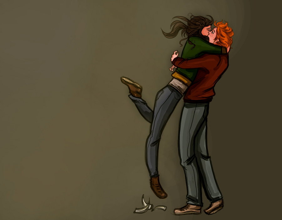 Bardzo elegancki fanart. Co prawda, Ron wgląda jakby chciał pożreć Hermionie pół twarzy, ale na się to przeboleć