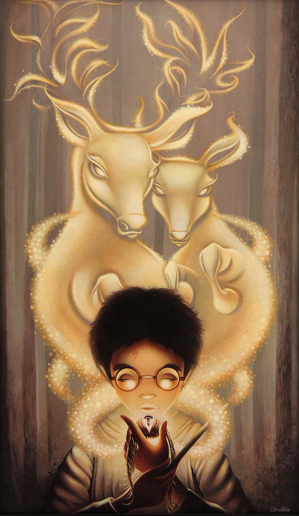 bardzo podoba mi się znicz i ten pomysł otulenia chłopca patronusami... super!