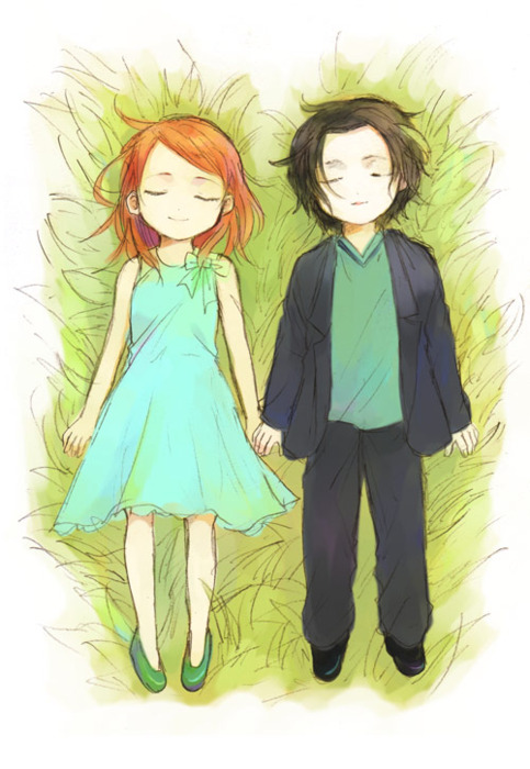 W ogóle moim zdaniem to najsłodszy fanart przedstawiający Lily i Severusa. Jest w nich tyle spokoju i niewinności. Uwielbiam <3