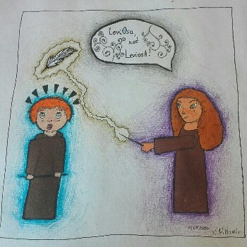 Szczególnie podoba mi się chmurka z tekstem. Delikatne zawijasy idealnie pasują do czcionki. A zaskoczenie na twarzy Rona uchwyciłaś perfekcyjnie!