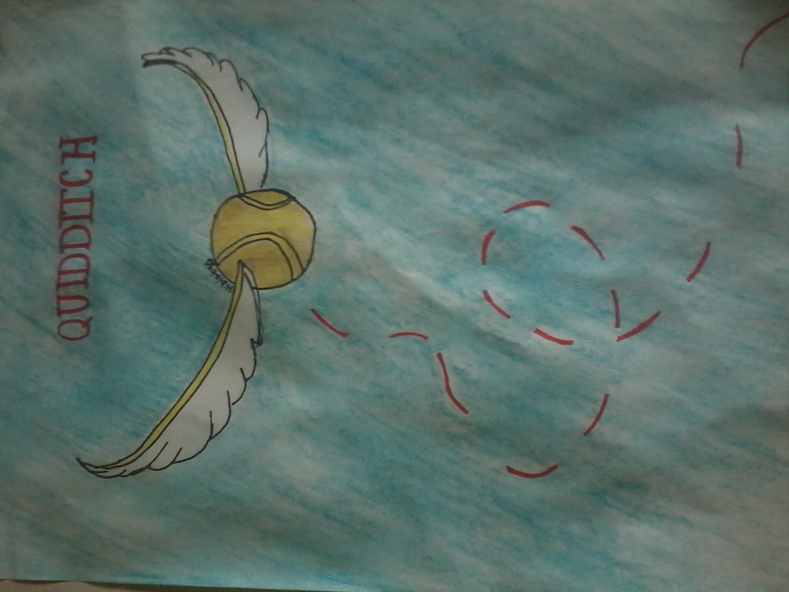 Jak ja nie lubię zniczy, i rysunków powiązanych z quidditchem, tych wszystkich tłuczków, boisk, pałek, kafli itd. Jednak pięknie to wyszło kolory takie żywe, ale wole postacie czarodziejów i magicznych stworzeń zdecydowanie <;