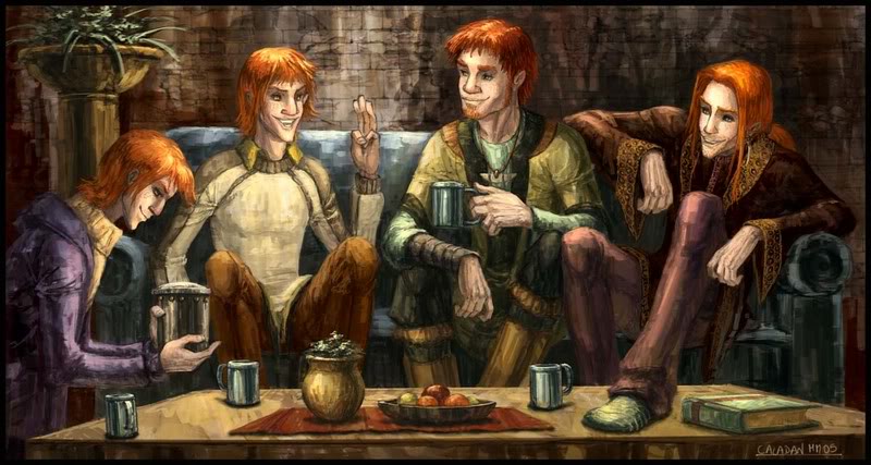 Ogólnie fan art nawet fajny. Najbardziej spodobał mi się tu chyba Bill i Charlie. Bliźniacy w ogóle nie odpowiadają moim wyobrażeniom. Fred lub George... Ten w fioletowym w każdym razie, wygląda trochę jakby coś knuł