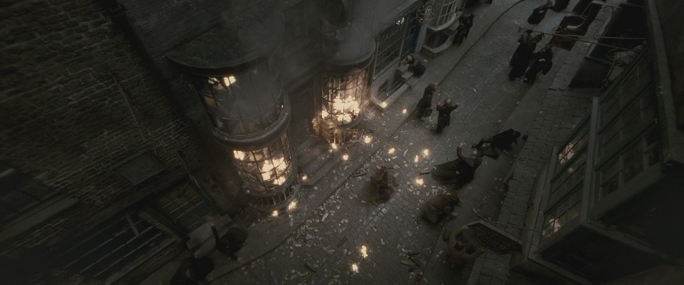 Scena z Ksiecia Polkrwi, nic nie wnoszaca i dajaca, wcale nie bylo wyjasnione w tym filmie ze porywaja Olivandera, to sie dopiero okazalo w kolejnej czeci, dlatego kiepsko ten film zostaol wyrezyserowany, ze czlowiek musi najpierw ksiazke przeczytac, zeby obejrzec