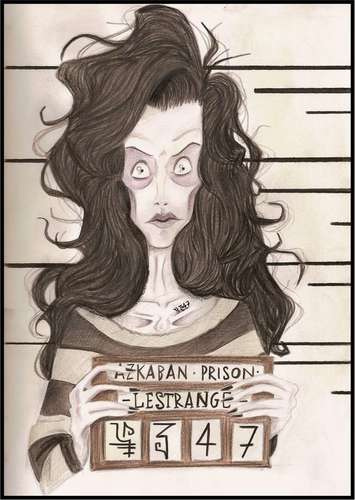Fenomenalny fanart! Tyle, że Bellatrix jest tu tak oszpecona, że szok ;p Jednak tak mogła wyglądać po zatrzymaniu i pobycie w okropnym Azkabanie. Nie, żeby sobie na to zasłużyła, ale dożywocie w takim miejscu jest czymś gorszym od śmierci. Chuda jak szkapa, podkrążone oczy - wrak dawnej wiedźmy...