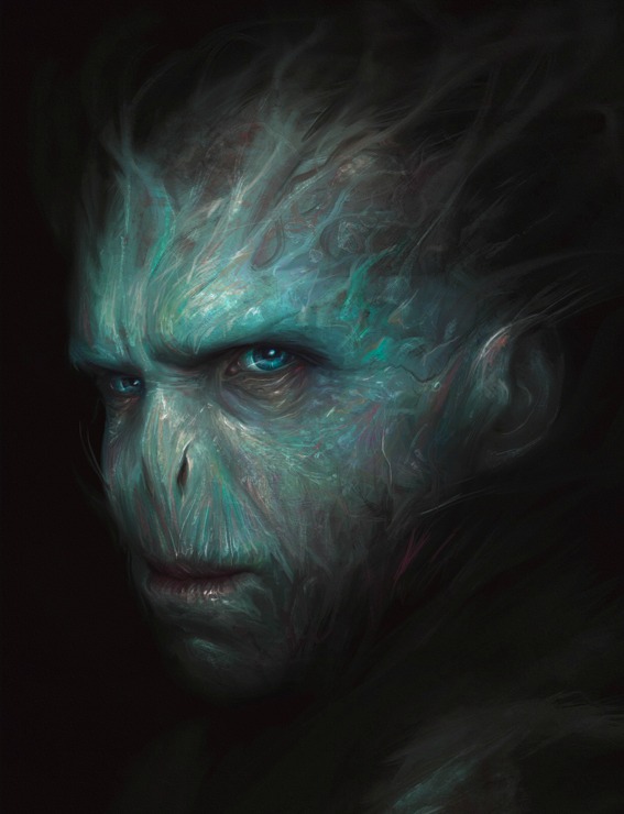 Wow, ten fan art. wygląda naprawdę imponująco, ktoś ma naprawdę gigantyczny talent. Co prawda nie rozumiem dlaczego twarz Voldemorta pokrywają niebieskie ''płomienie'', ale ok