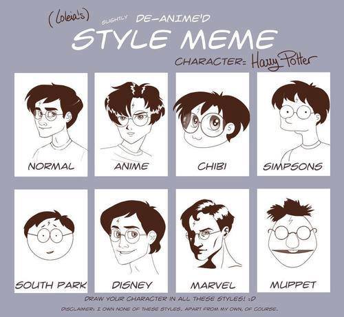 Bardzo fajne przedstawiono Harrego Pottera w różnych stylach. Normal nie jest taki normalny, ponieważ wygląda inaczej niż na niektórych okładkach czy tego typu rzeczach w książce, ale i tak jest ładny. Anime jest dziwne takie jakieś jak w bajkach animowanych