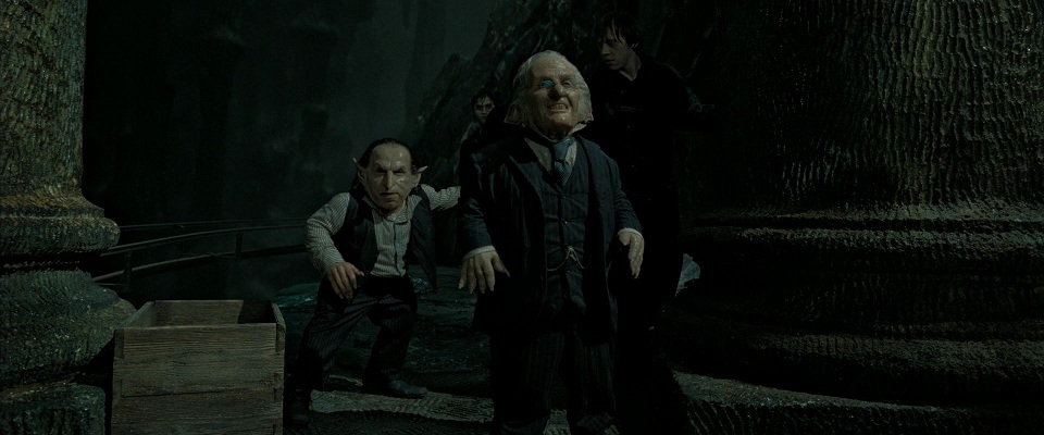 Charakteryzacja postaci, zwłaszcza goblinów jest bardzo realistyczna. Podoba mi się, mistrzowsko to wyszło. Jako jedna z niewielu rzeczy w Insygniach Śmierci filmie.