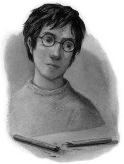 Tak na prawdę to nie rozumiem tytułów tych fan artów. Tu wyraźnie pokazana jest połamana różdżka Harrego, a nie Prorok Codzienny. Harry ma taki fajny wyraz twarzy. Szczery. Blizna jak zwykle za bardzo rzuca się w oczy.
