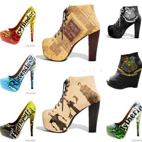 Na Merlina, cóż to za buty? Lubię chodzić w butach na obcasie i że względu na wierność mojemu domowi wybrałabym te z motywem Ravenclawu. Są po prostu śliczne. Im dłużej na nie patrzę to chce takie mieć