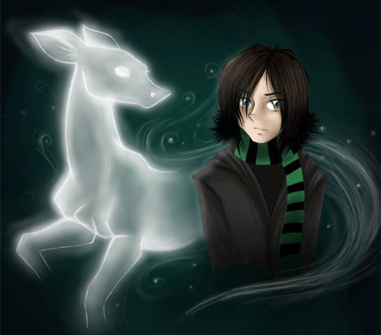 Nie podoba mi się ta praca, choć w sumie mi mało którą praca przedstawiająca jego postać się podoba. W tym fan arcie urzekła mnie ta chroniąca chłopaka łania, nie podoba mi się natomiast sam Snape - zupełnie inaczej wyobrażam sobie go w młodości.