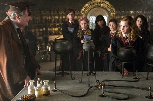 Ta scena w Księciu wydawała mi się bardzo wiarygodna, dokładnie tak wyobrażałam sobie lekcje eliksirów w książce. Tylko nie wiem, co tam robi Neville, w książce też uczęszczał na te lekcje w 6 klasie?