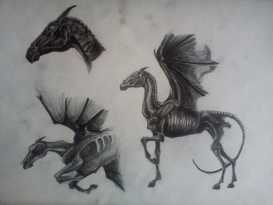 O zgrozo, znowu te cmentarne koniki jak je nazywam. Nie mam nic do testrali, ale jest czymś oczywistym, żebym wolał ich nie widzieć. Po prostu są bardzo fajne, pożyteczne i w ogóle, ale uważam, że wchodzenie z nimi w zażyłość byłoby czymś dziwnym.