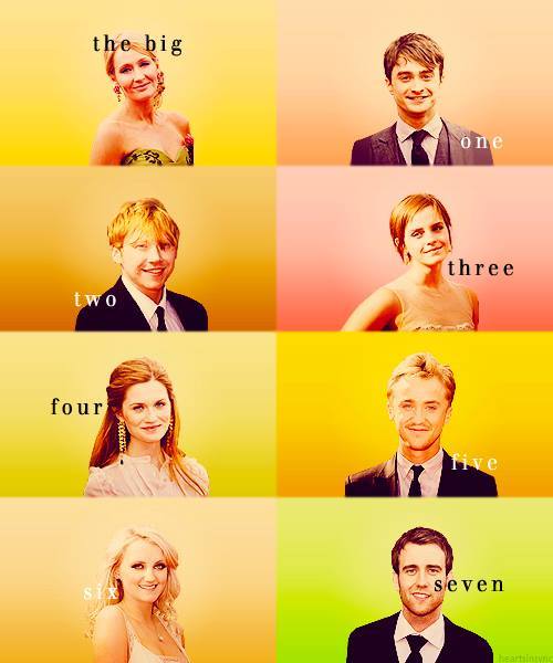 NIby sioodemka, a jest ttuaj osiem osob na zdjeciach, ale Rowling nie wystepowala w filmie akze luz